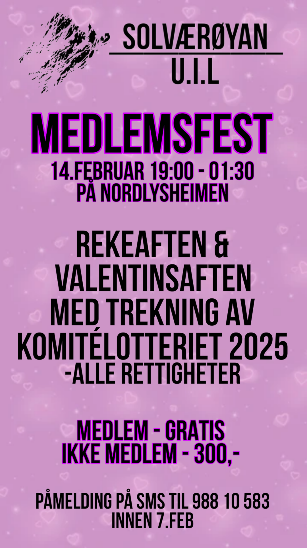 Solværøyan UIL inviterer til medlemsfest på Nordlysheimen 14.Februar!