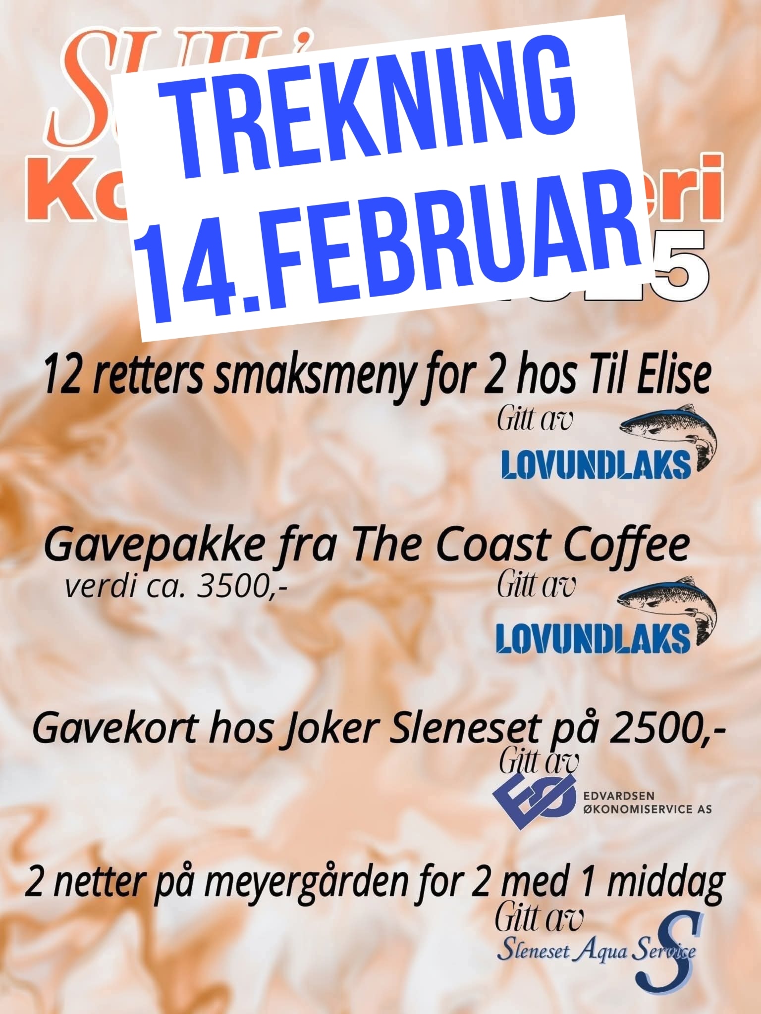 Vi kombinerer rekeaften med hjerteballonger og ekte valentinstemning. Vi trekker også premiene fra komitè-lotteriet 2025.